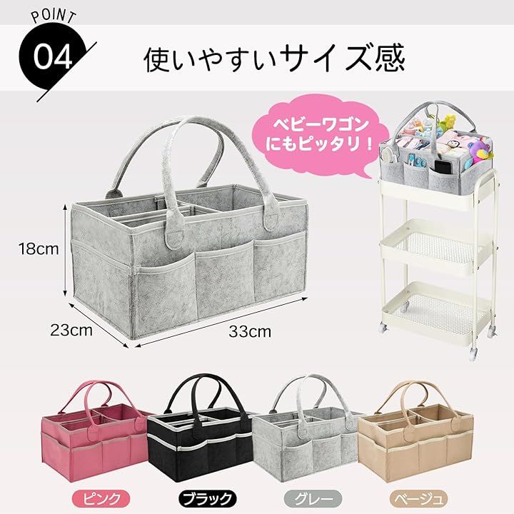 「 育児が終わった後も、ずっと使える/製品仕様 」 *サイズ:約33cm x 23cm x 18cm *材質:高品質フェルト *仕様:折りたたみ可能。