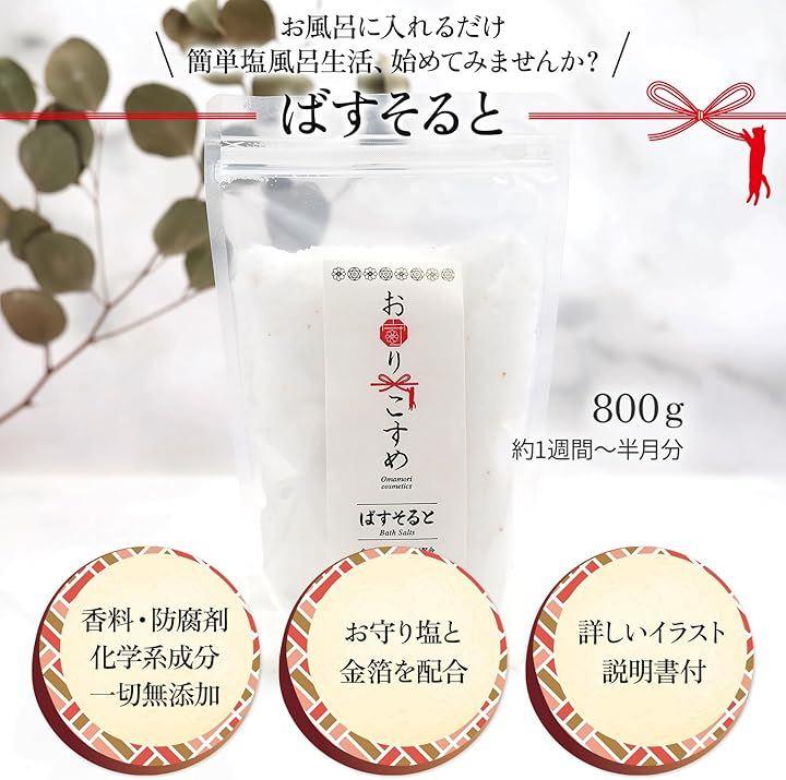 「こだわりの配合」「ばすそると」には塩美容研究家が選りすぐったお塩・御守り塩と金箔を贅沢に使用しております。