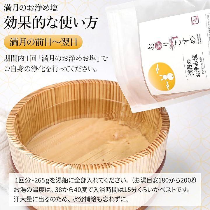 <満月のお浄め塩>*使用方法 38~39度のお風呂に、本品をよく混ぜてお湯に溶かします。