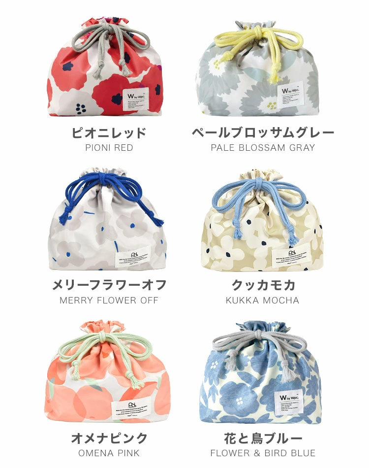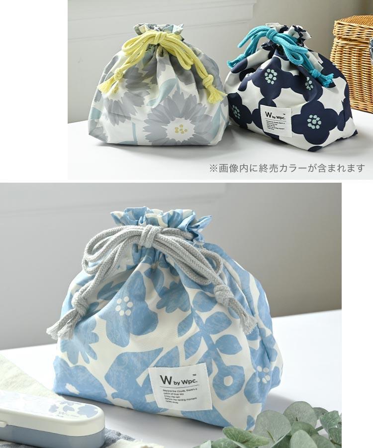 【ランチ巾着】Wpc.のテキスタイルを使用したランチ巾着が登場!大人も子供も使いやすいおしゃれなテキスタイルの巾着袋です。生地の表面にはっ水加工を施しているので、汚れがつきにくく使いやすくて便利♪内側には保冷剤を入れるのに便利なメッシュポケット付き。2段お弁当箱と箸ケースがすっぽり入る大きさです。オフィスや学校で幅広く使えておすすめです♪