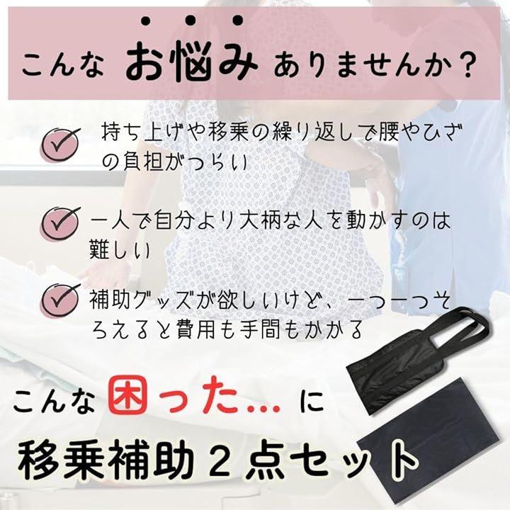 介護時の移乗や起き上がりをラクにする、スライドシート(移乗シート)と起き上がり補助ベルトの2点セット。
