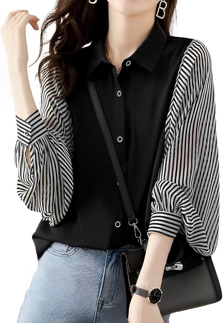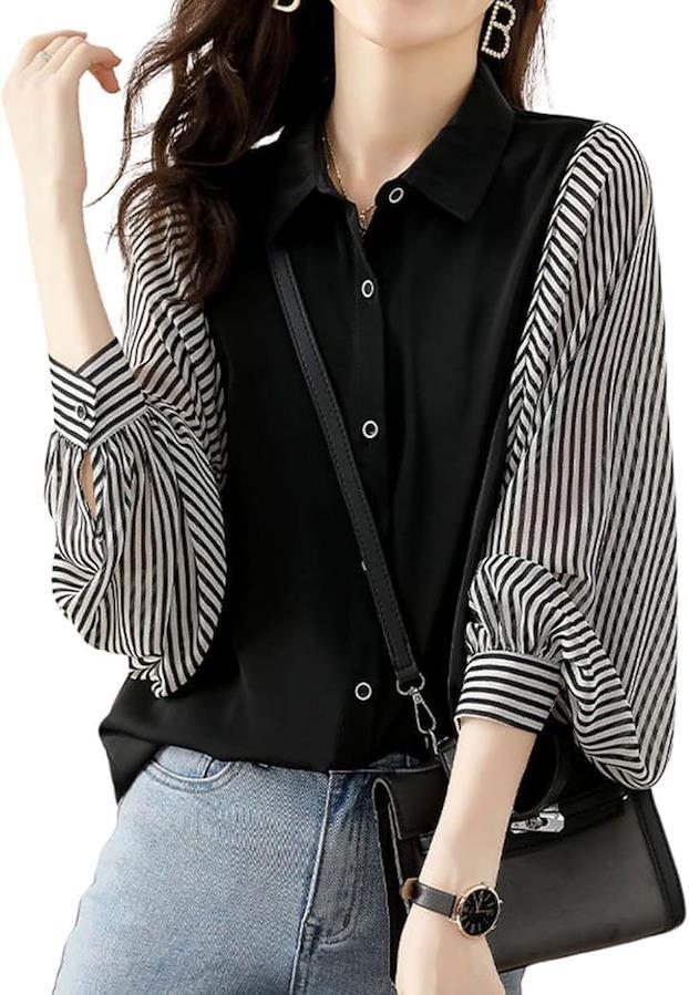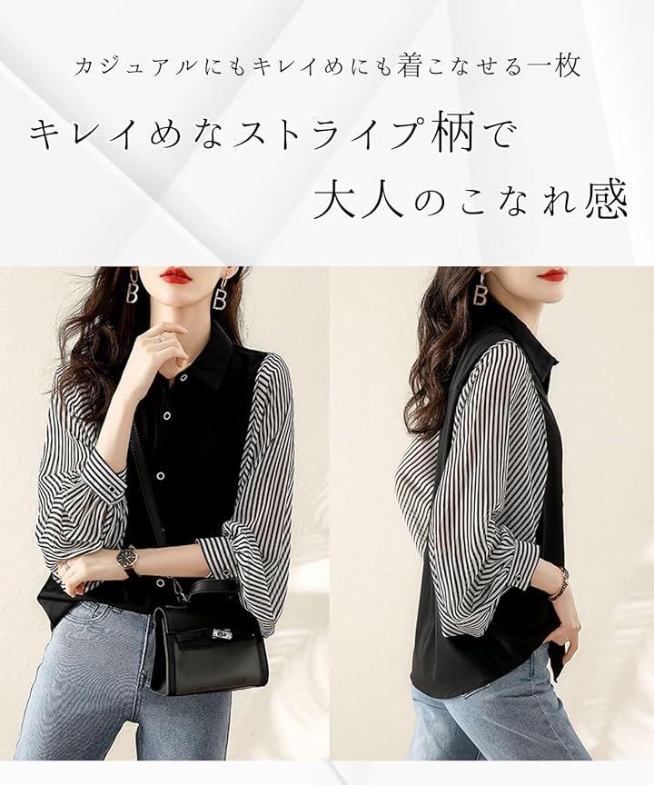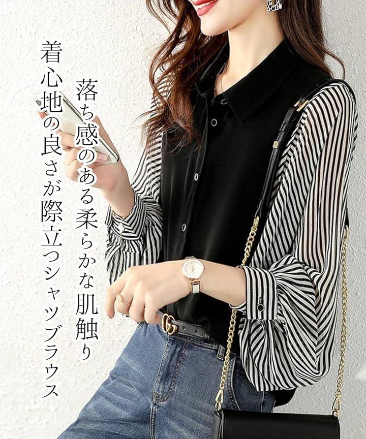 サラリとした透け感ある素材とボリューム感のある袖が上品で女性らしく、華奢見え効果もあるお洒落ブラウス。キレイめなストライプ柄で大人のこなれ感を演出。