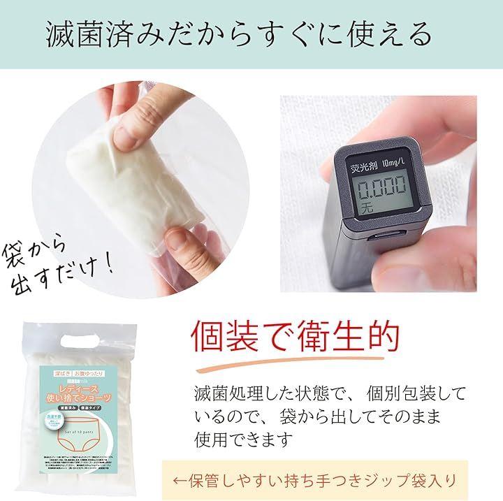 「衛生的で使いやすい個包装」1枚ずつ袋に入った使い捨てショーツだから、いつでも清潔に使えて安心。