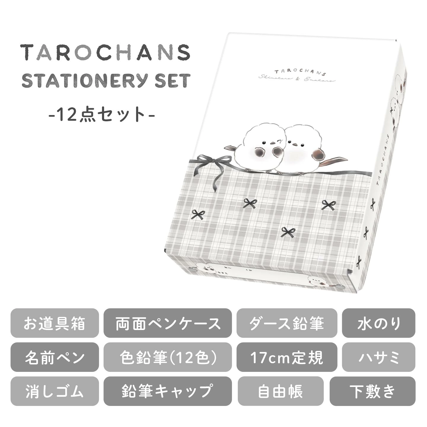 【2026年 お道具箱セット】入学準備・入学祝いやクリスマスプレゼントにぴったりの文房具豪華12点入りお道具箱セット! 女の子に人気なシマエナガの「しまたろず」デザインです。このセットで小学校で必要なものが揃うので、入学準備はこれでバッチリ!おそろい柄のかわいい文房具で入学や新学期がもっと楽しみに♪