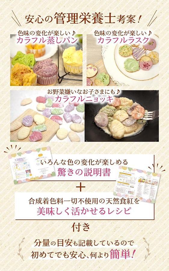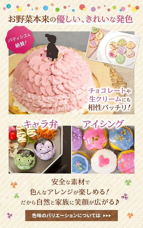 原材料:ビーツ、ほうれん草、紫芋、にんじん、かぼちゃ、食物繊維