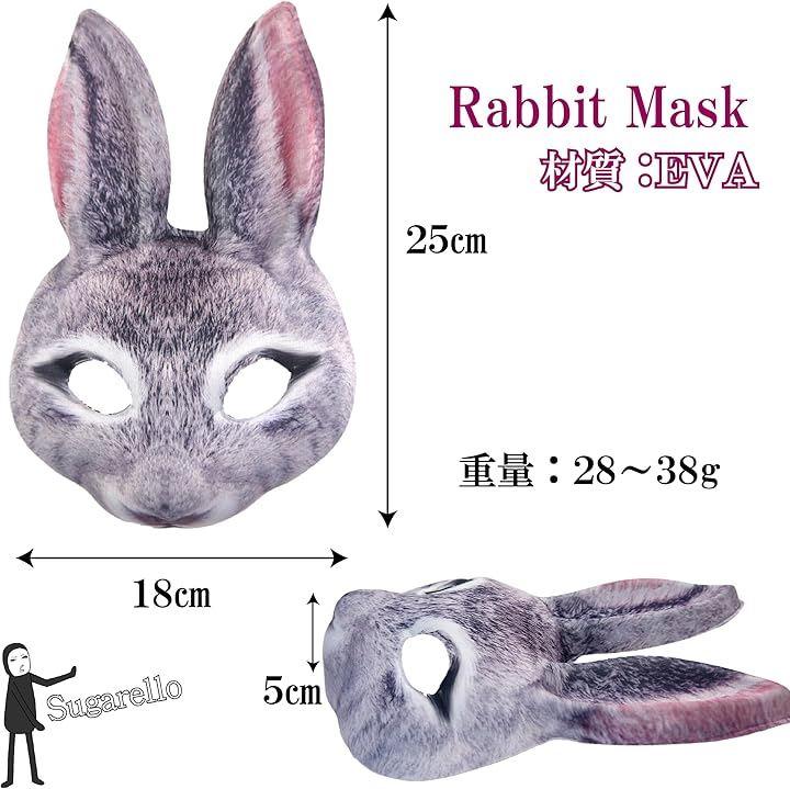 可愛くもあり、ちょっと微妙なところもあるリアルなウサギのお面。