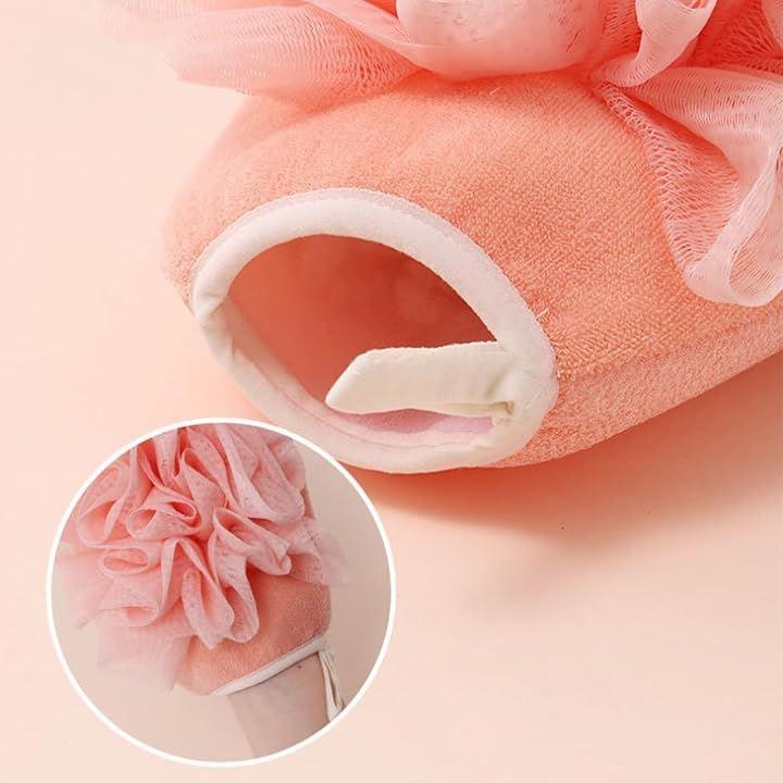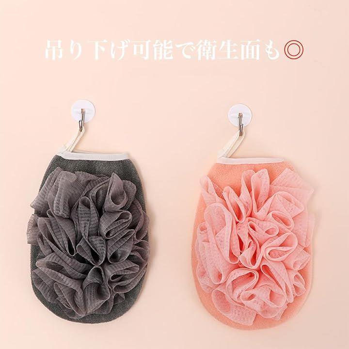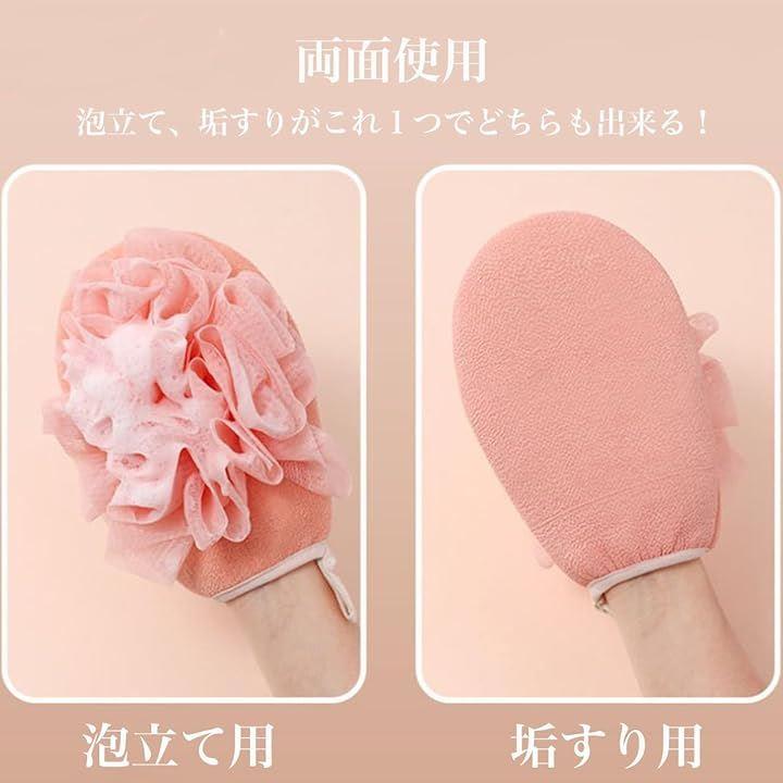 片面は豊かな泡立ちを生むメッシュ素材、もう片面は優しく角質を落とせる垢すり仕様。