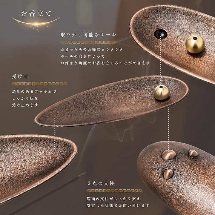 またブロンズは落ち着きがあり深みのある色合いでクラシカルな装いでどちらにも違った良さがありお香立てとしてだけでなくインテリアとしてもお使い頂けます。
