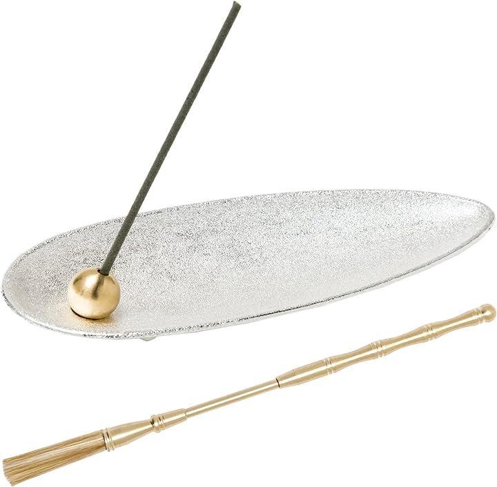 「セット内容」香皿 シルバーx専用ブラシ各1個 長さ14cmx幅5.5cmx高さ1.5cm 重量45g お香挿し用の球x2個 直径1.5cm 重量11g