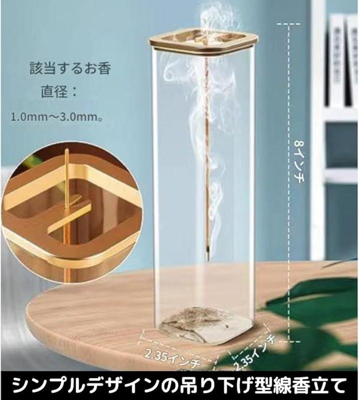 「縦型のスタイリッシュな吊り下げお香立て」丸型と角型の2タイプから選べる縦型のスリムでおしゃれなガラス製のお香立て。