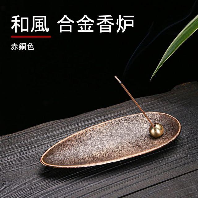Incense holder (red copper) with incense holder, Japanese-style alloy incense burner, stylish and modern design for Buddhist altars, study rooms, meditation, and sleep.