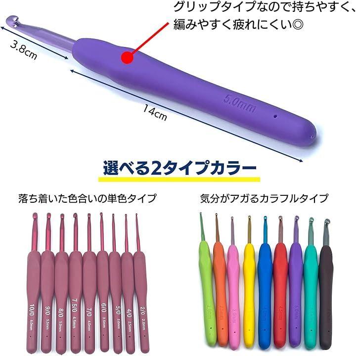 このかぎ針セットは、初心者でも使いやすい設計 になっており、持ちやすいグリップで長時間の編み物作業でも疲れにくくなっています。