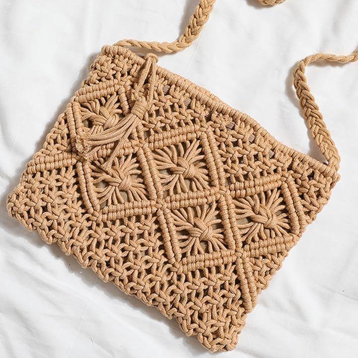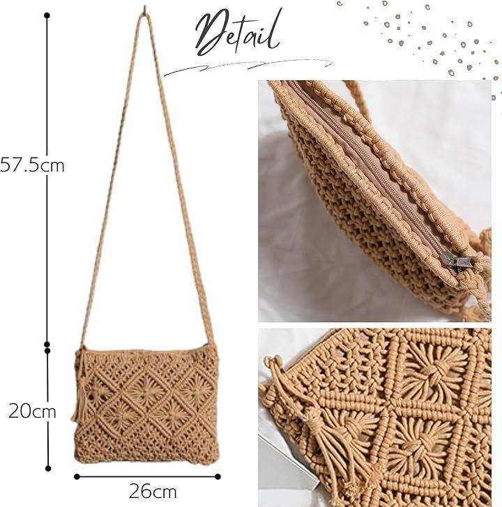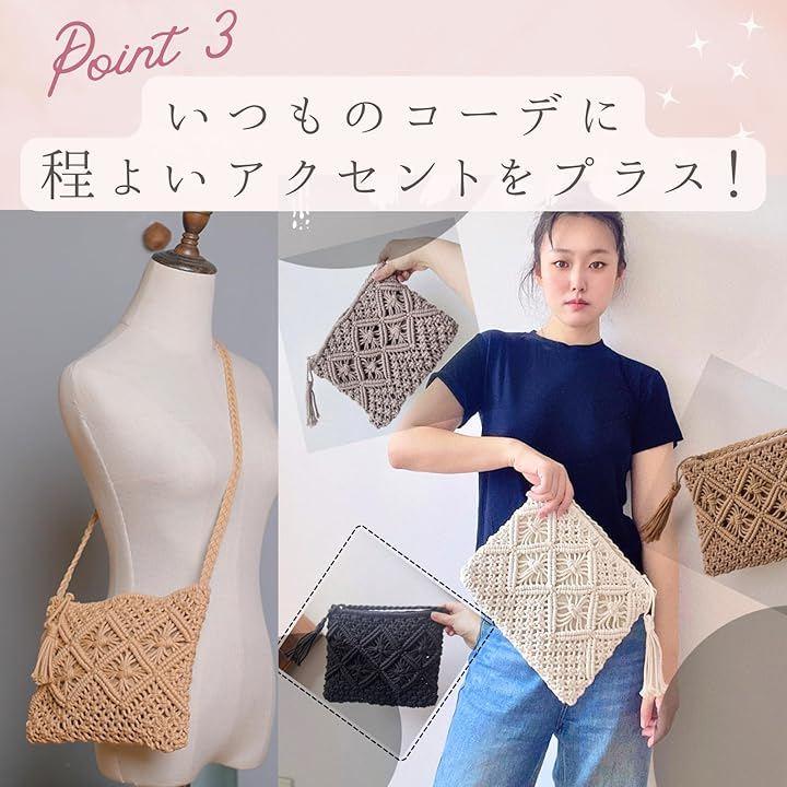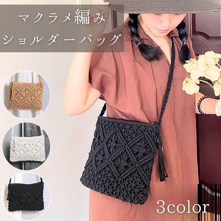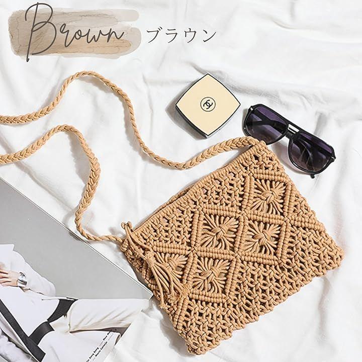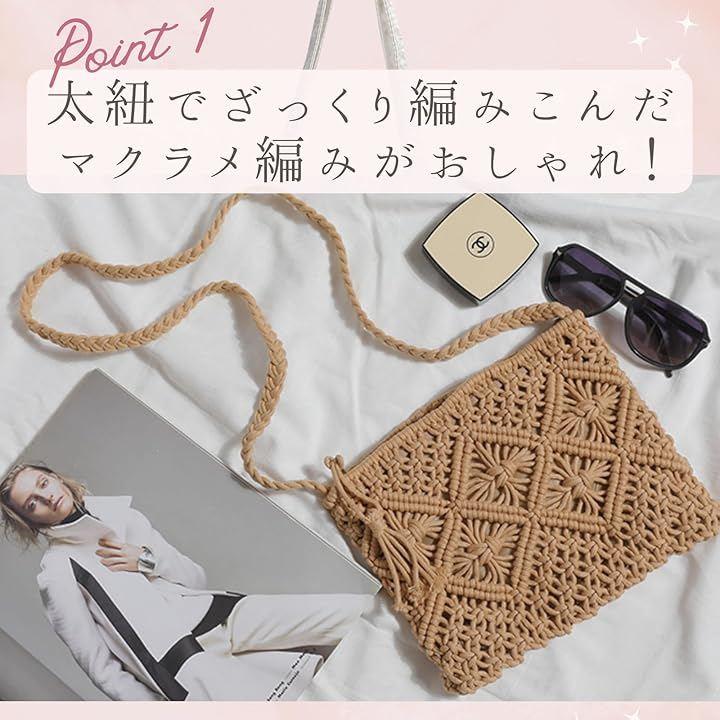 太紐でざっくり編みこんだマクラメ編みがおしゃれなショルダーバッグです。
