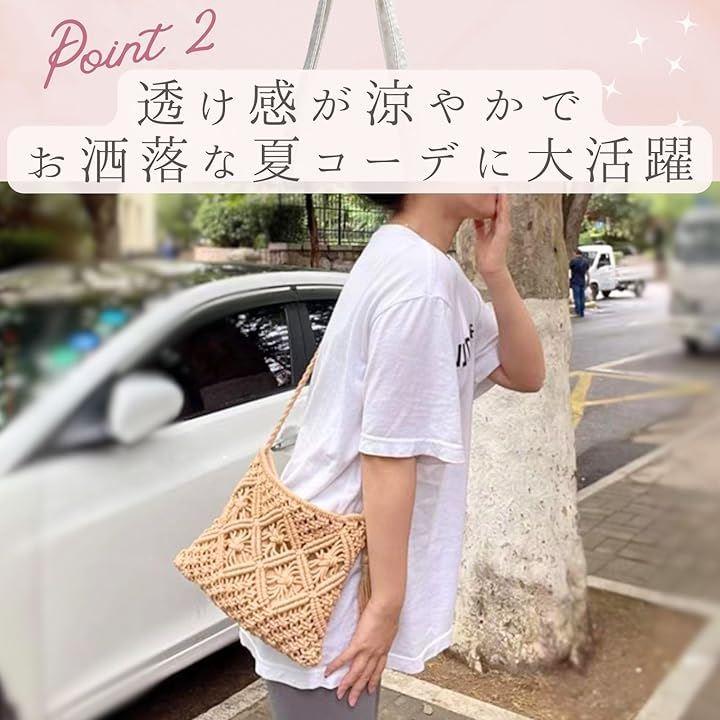 太紐でざっくり編みこんだマクラメ編みがおしゃれなショルダーバッグです。
