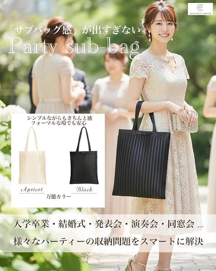 「パーティーバッグの収納問題をスマートに解決」見た目は控えめで上品「サブバッグ感」が出すぎない、A4がすっぽり入る収納力。
