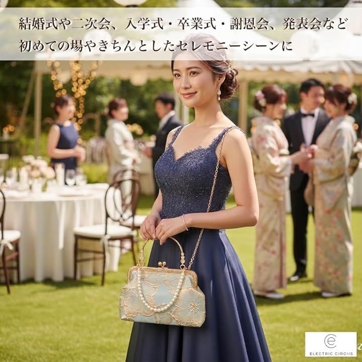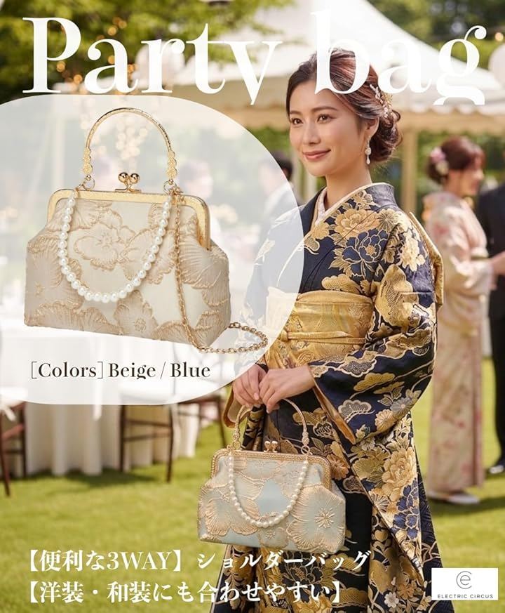 「便利な3WAY」ショルダーバッグ(チェーン+パールの2通り)とクラッチバッグの3通りの使い方で、お手持ちのドレスや着物に合わせやすい