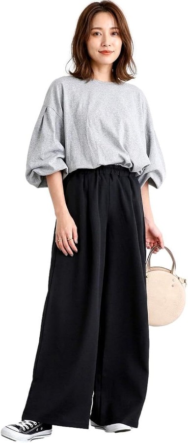 「快適・動きやすい・らくちんワイドパンツ」これからの季節にぴったりの生地感で、分厚過ぎず薄過ぎずちょうどいい