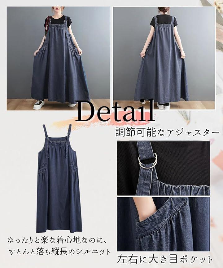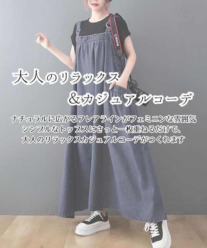 ナチュラルに広がるフレアラインがフェミニンな雰囲気のデニムジャンパースカート 肩紐は自由に自分サイズに調節可能。