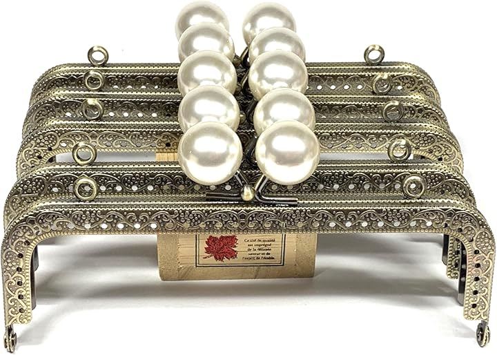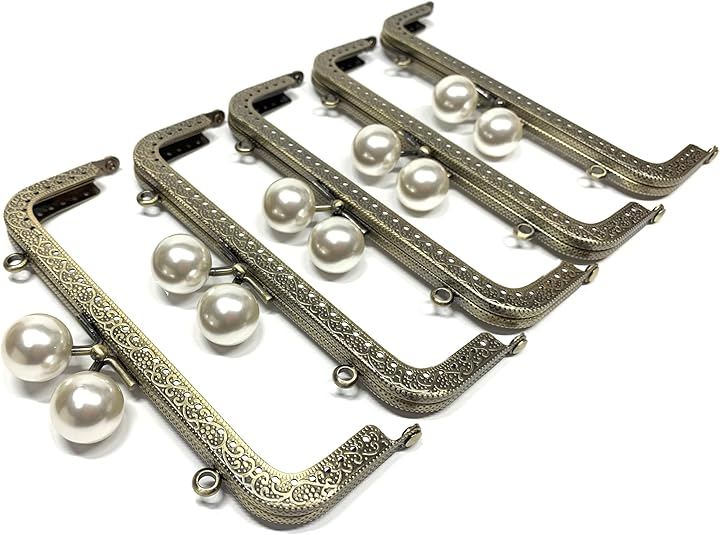Set of 5 square coin purse frames (15.5cm diameter, 5cm height), antique gold finish, round shape, sew-on type, for handmade crafts, DIY projects, and repurposing.