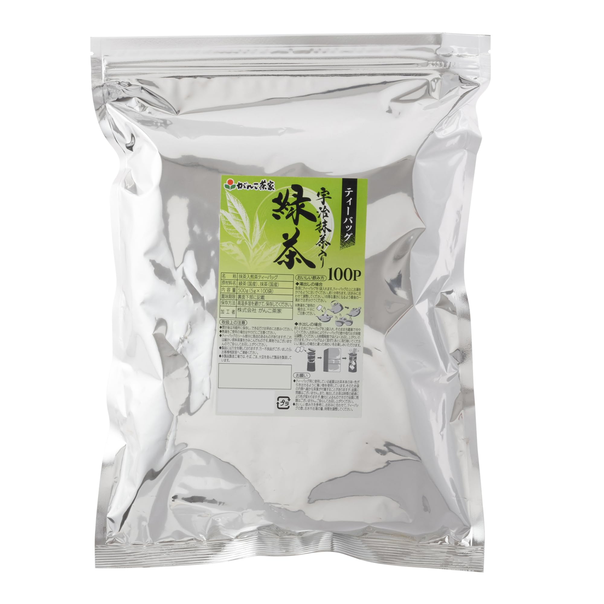 がんこ茶家 業務用 宇治抹茶入り 緑茶 ( 大容量 500g / ティーバッグ / 5g × 100袋 ) 爽やかな香り ( アイス / ホット ) 水出し ( オフィス / 家庭用 )