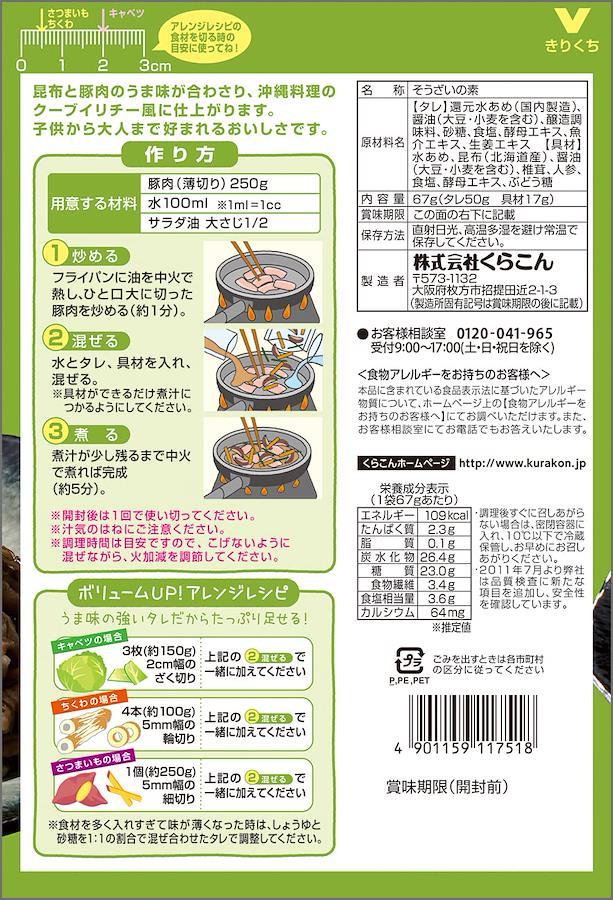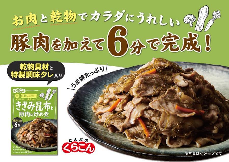 クイック乾物商品のパイオニアとして開発。お肉を加えて短時間煮込むだけで、簡単に本格的なおいしい和風惣菜ができあがります。沖縄県の郷土料理でよく知られているクーブイリチー風のおかずです。昆布と豚肉の旨みが合わさって、子供から大人まで好まれるおいしさです。栄養バランスの良い食生活を応援します。また、乾物に慣れ親しんでいる方にも、色んな具材と合わせてアレンジしてお召しあがりいただけます。