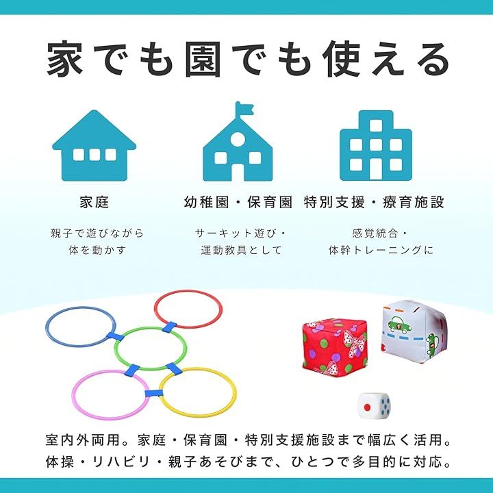 リハビリや特別支援、幼稚園・保育園での運動あそびにも活用できます。