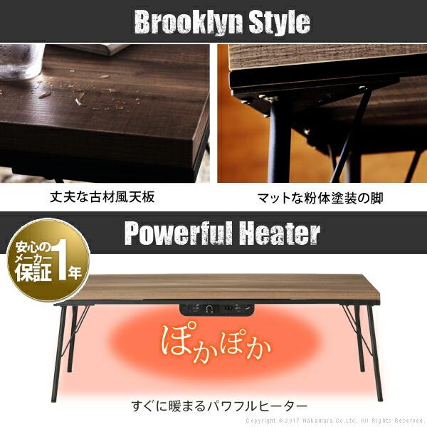 Brooklyn Kotatsu Table with Extension Legs Antique Wood-Like Iron Kotatsu Table - Brook High Type 120x60cm Rectangular Stylish Kotatsu Warm Antique Wood Vintage Retro Iron Telework Remote Work Work from Home