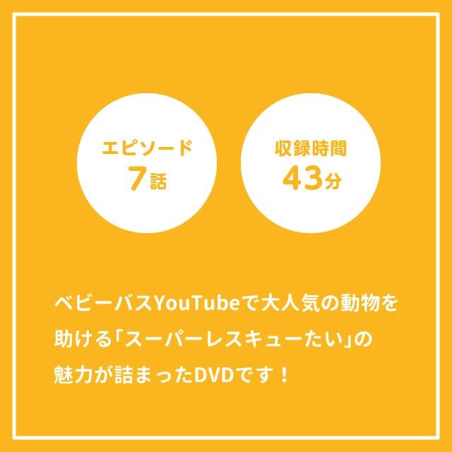 ■ベビーバスYoutubeで大人気の動物を助ける「スーパーレスキューたい」の魅力が詰まったDVD ★お子さまが大好きな乗り物(レスキューバス・ヘリバス・ヘルパーバス・マリンバス、レスキュートレイン)も登場し、水陸空で協力しながらそれぞれに大活躍! また、隊長のキキをはじめとして、ミュウミュウ、ジャンジャンなどレスキュー隊のなかまたちも全員登場します! ★ストーリー形式のエピソードには、数多くの動物が登場! 助ける過程の中で、動物の生態を知ることができます。 ★10分の長いストーリーから3分程度のショートストーリーまで、飽きずに観られる構成でエピソードを収録。 これまでのベビーバスのDVDの中でも収録尺数が長く充実した内容です。 DVD限定特典その1 「レスキューたい キラキラカード」 「スーパーレスキューたい」すべてのメンバーの強さなどの情報がわかるキラキラカード付! じゃんけんカードとしてもお楽しみいただけます。 DVD限定特典その2 「スーパーレスキューたい のりものポスター」(A3サイズ) 「スーパーレスキューたい」すべての乗り物のヒミツを紹介したポスター付! 映像で楽しんだあとにじっくりとレスキュー隊ののりものの機能を知ることができます。 対象年齢:0歳~ メーカー:ジャパンベビーバス 収録:7エピソード(合計約43分) 音声・字幕:日本語 DVD限定特典:スーパーれすきゅーたいカード /のりものポスター(A3)