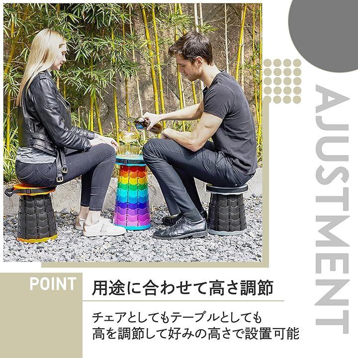 「高さ調節で快適な座り心地」この折りたたみスツールは、簡単に高さを調節できるため、子供から大人まで誰でも快適に使用できます。
