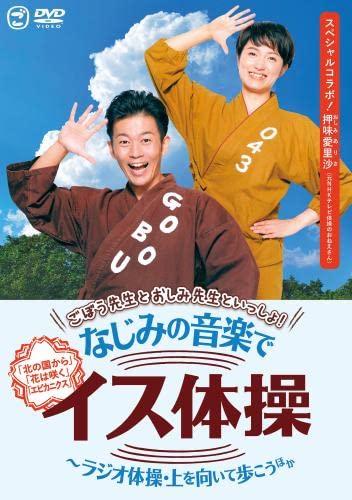 ごぼう先生の新作は老若男女問わずおなじみの音楽で! ラジオ体操でしっかりフレイル対策! 誰もが知っている音楽で気分を上げて1・2・3! ●ごぼう先生の新作は日本国民の健康増進の基本「ラジオ体操」と老若男女が知っているなじみの音楽を取り入れて! 「ラジオ体操」は、元NHKテレビ体操のインストラクター押味愛里沙さんこと「おしみ先生」監修・解説つき。 ごぼう先生といっしょにシニアの皆様に伝わりやすい動きで、楽しくできるための「ラジオ体操 第一」をお送りします。 ●また、「花は咲く」「上を向いて歩こう」「北の国から」等、親しみやすいなじみの音楽といっしょに、 要介護者の方だけでなく、その周りにいらっしゃる介護に携わるみなさまのフレイル対策のためにもぴったりなイス体操をお届けいたします。