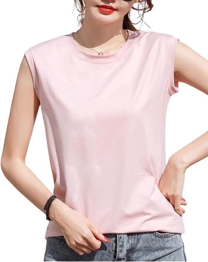 1枚で着ても、インナーでも使えてコーディネートにも便利な袖なしtシャツです。