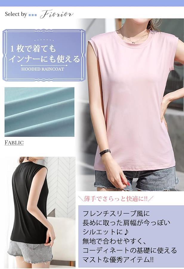 「ノースリーブでも二の腕細見え」フレンチスリーブ風に長めに取った肩幅のシルエットがシンプルなのにおしゃれに見せ、二の腕も細く見せてくれるデザインです。