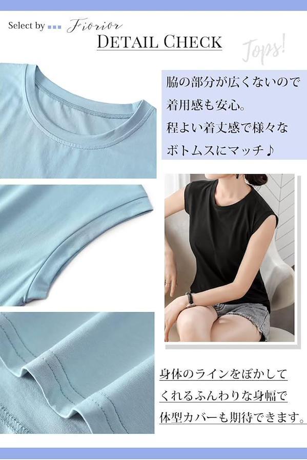 「ノースリーブでも二の腕細見え」フレンチスリーブ風に長めに取った肩幅のシルエットがシンプルなのにおしゃれに見せ、二の腕も細く見せてくれるデザインです。