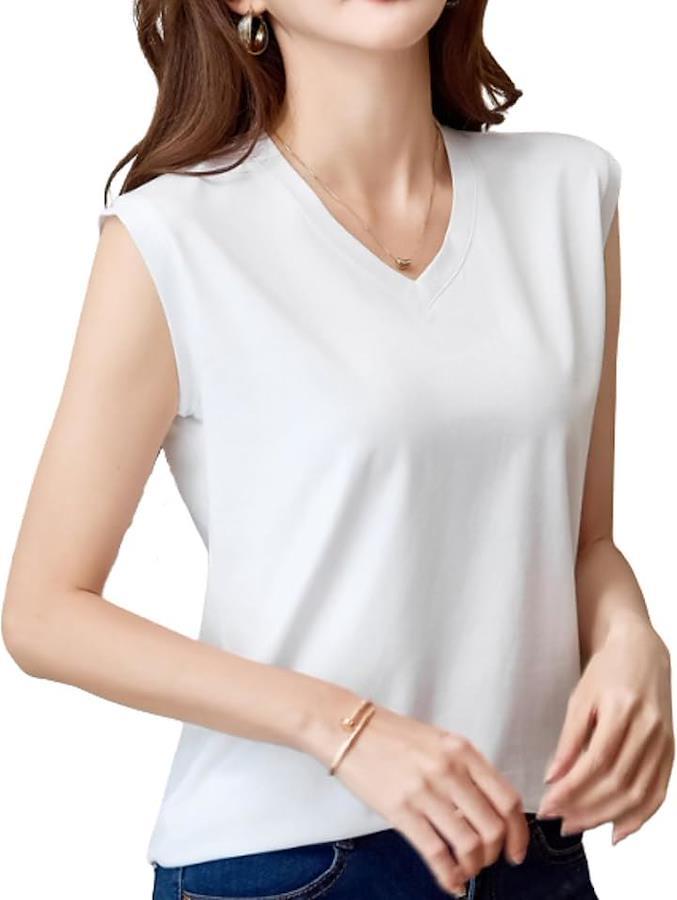 「深すぎないVネック」ネックラインは清潔感のある爽やかなVネックで小顔効果も。脇の部分も広くないので、脇部分から下着が見えにくいのも嬉しいポイントです。