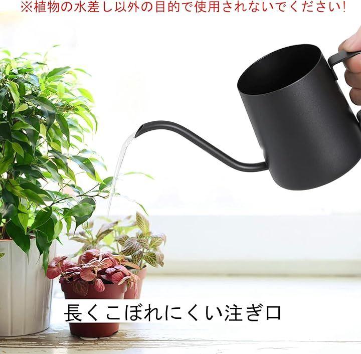 シンプルでスタイリッシュな形状が美しく、主にお部屋の観葉植物やお花への水やりに便利です。