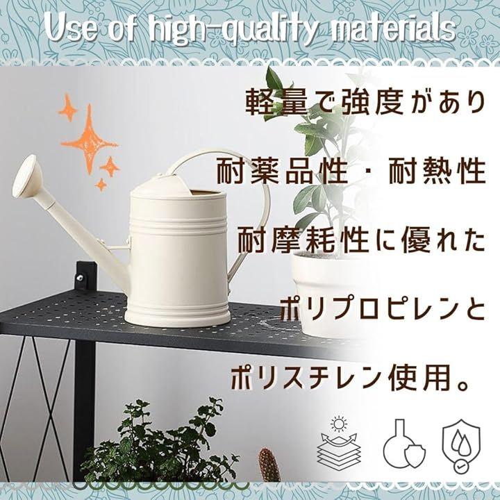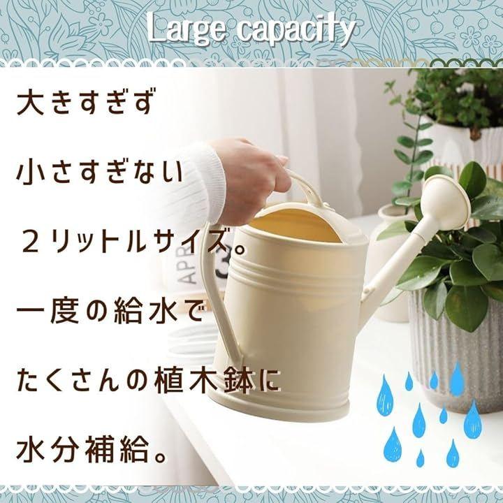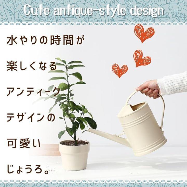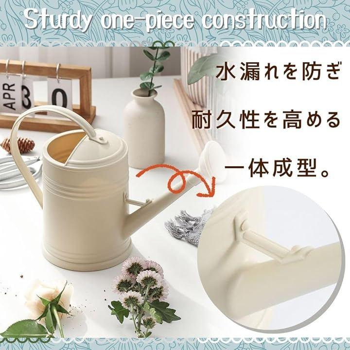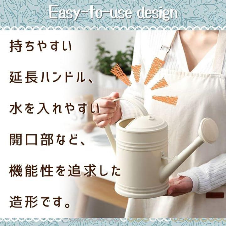 「快適な持ちやすさ」握りやすいハンドル形状は滑りにくく手にしっかりフィットし、長く細めの注ぎ口は水が飛び散りにくく、繊細な植物への水やりも快適。
