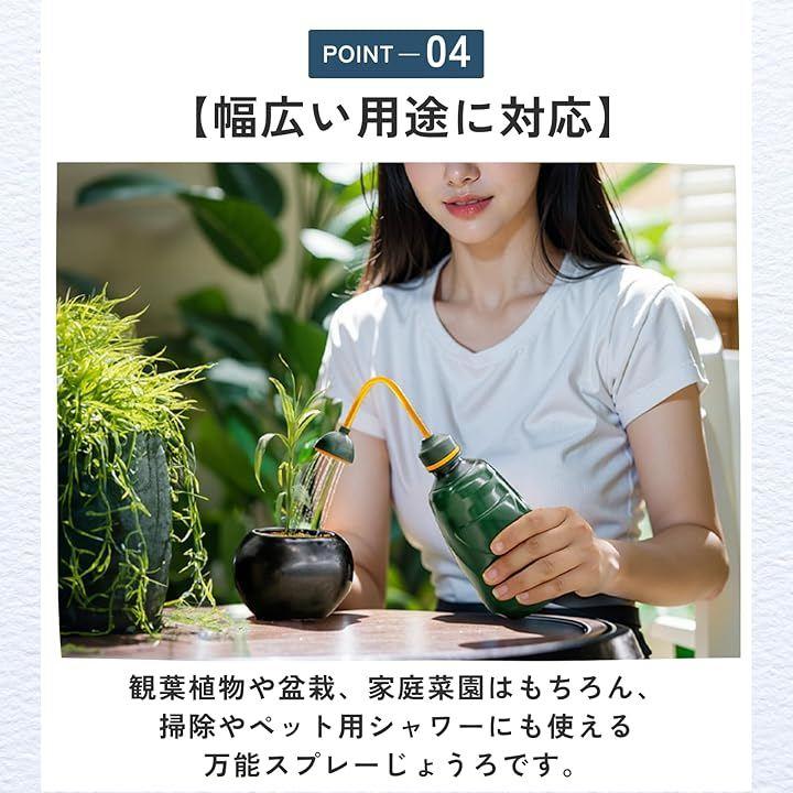 「幅広い用途に対応」観葉植物や盆栽、家庭菜園はもちろん、掃除やペット用シャワーにも使えるスプレーじょうろです。