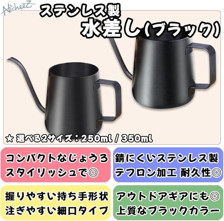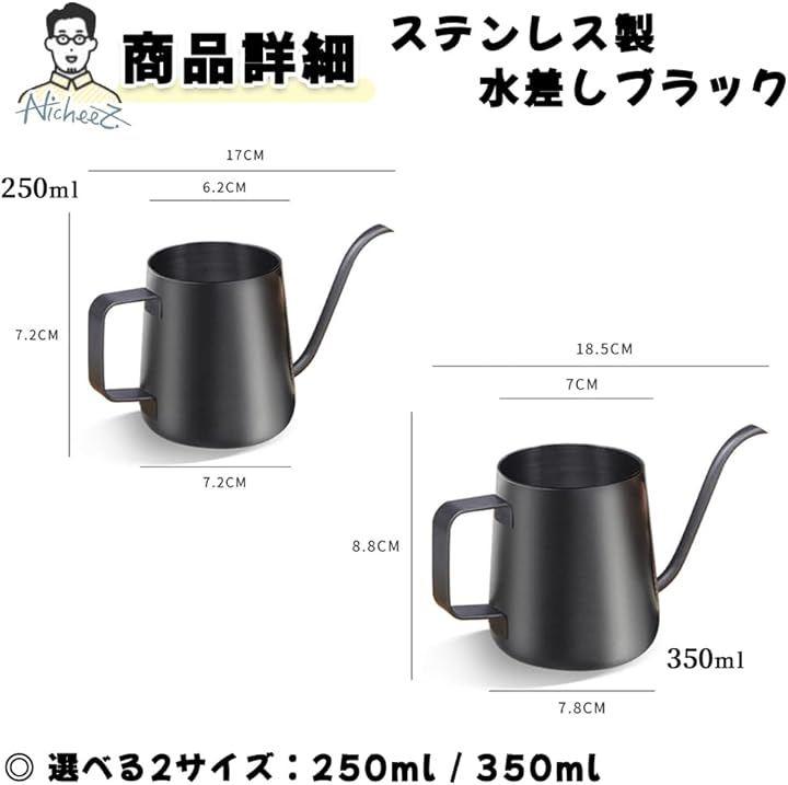 商品内容」ステンレス製水差し カラー:ブラック 材質:304ステンレス サイズ:(250mlタイプ)幅/約17cm 高さ/約7.2cm (350mlタイプ)幅/約18.5cm 高さ/約8.8cm
