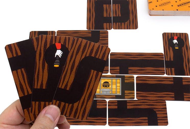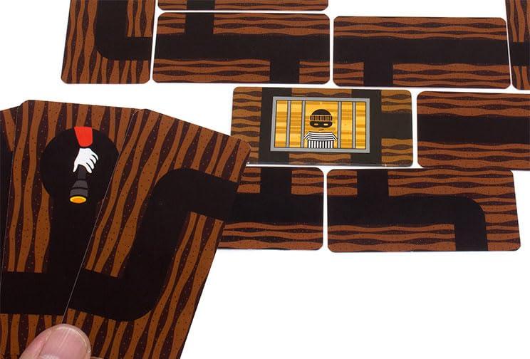 『バンディド』は、牢屋のならず者「バンディド」を逃がさないように、全員の相談協力で1人ずつ通路カードを手札から出して場につなげていきながら、すべての通路の端を行き止まりかループで塞ぐカードゲームです。