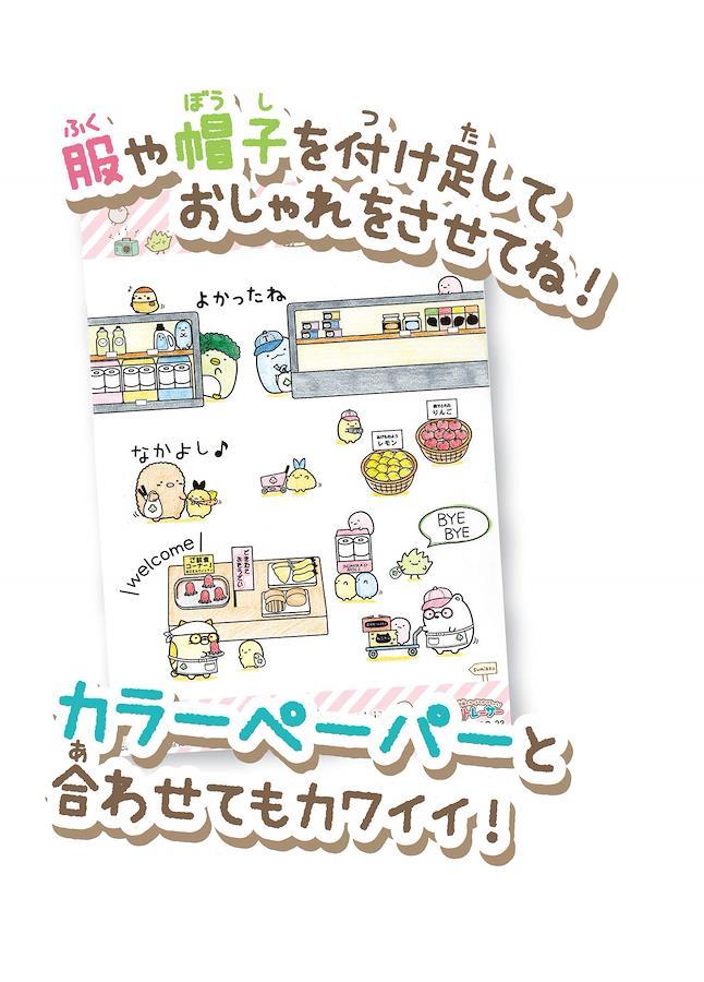 ●カワイイすみっコたちと、背景や着ぐるみ、洋服など約20種類のお手本シートと組み合わせると、数多くのすみっコぐらしの世界観を描くことができます。