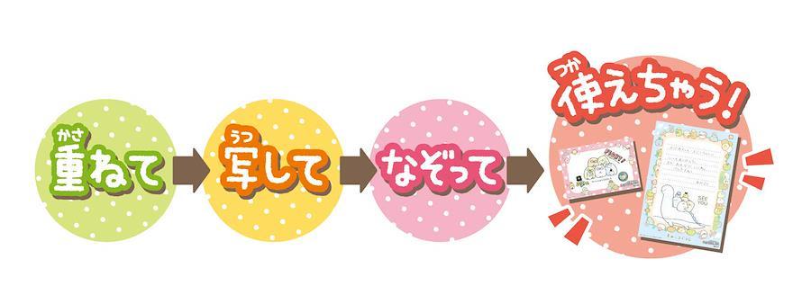 お手本シートを組み合わせると、すみっコぐらしのイラストが簡単に描け、オリジナルカードや便せんも作れます。