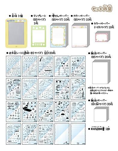 【セット内容】本体×1、お手本シート×20、無地ペーパー(B5サイズ)×20、無地ペーパー(折り紙サイズ)×20、カラーペーパー(B5サイズ)×10、カラーペーパー(はがきサイズ)×10、便箋ペーパー(B5サイズ)×10、テンプレート(B5サイズ)×1、取り扱い説明書