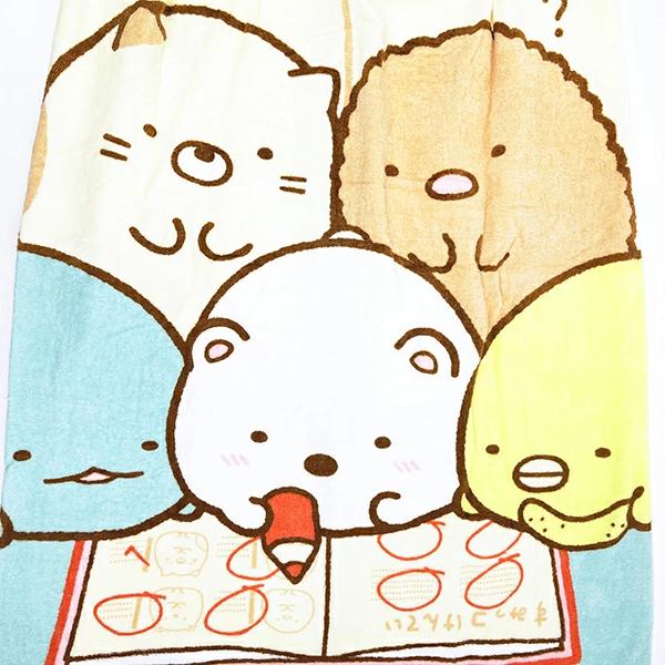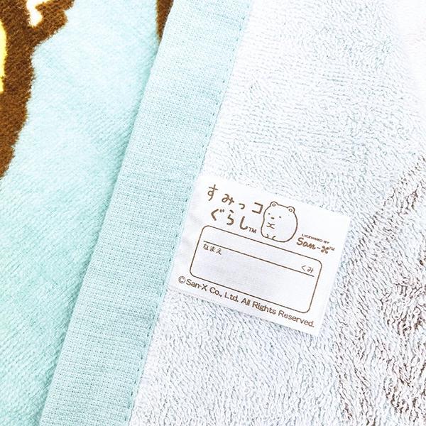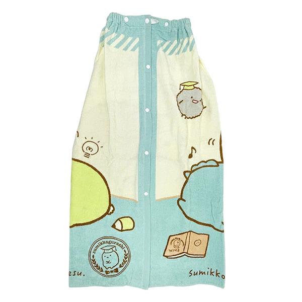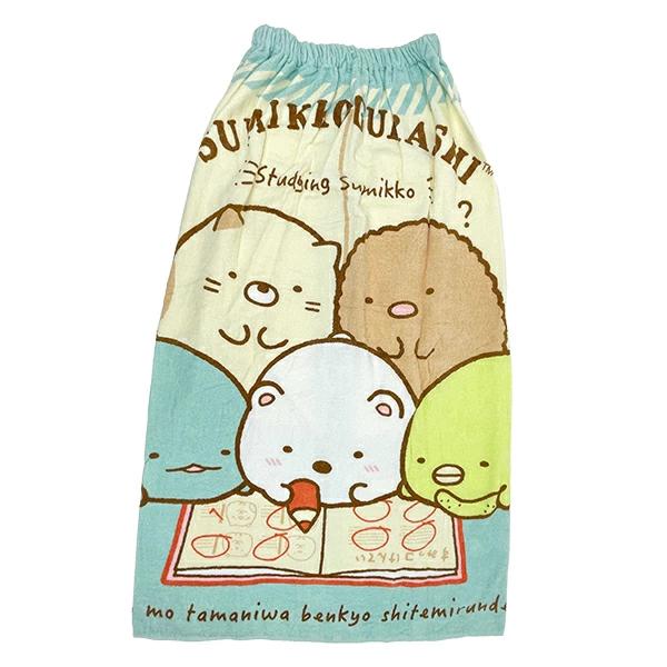 すみっコぐらしのプールスカートタオルです。綿素材で吸水性もよく、お手入れしやすく、ネームタグ付きなので保育園などで活躍すること間違いなし♪サイズを2段階調整できるので長く使えて嬉しい☆プール用にはもちろん、お風呂上りなどにも使えます♪