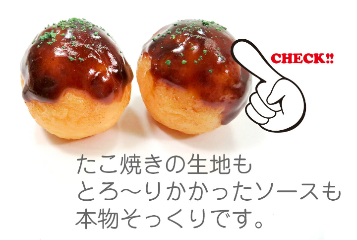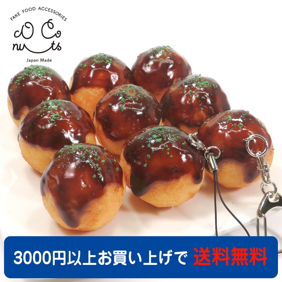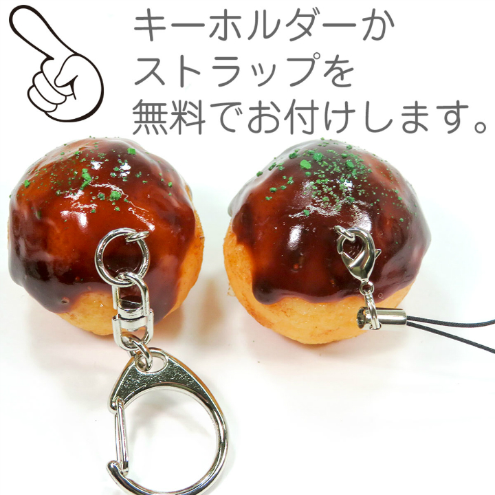 とろ〜りソースと青のりのかかったシンプルなたこ焼きの食品サンプルアクセサリーです。