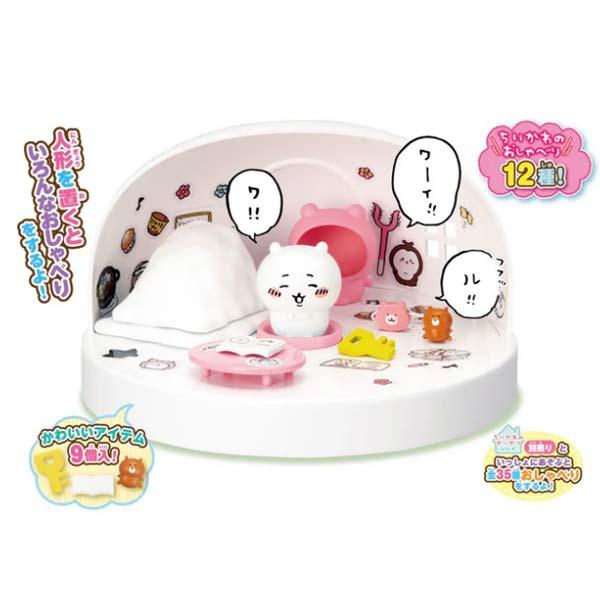 さらにシリーズ第一弾(別売り)の「ちいかわ ゆめのむちゃでかおしゃべりプリンハウス」や「ちいかわ なかまいっぱいセット」の人形を乗せてもおしゃべり遊びが楽しめます!