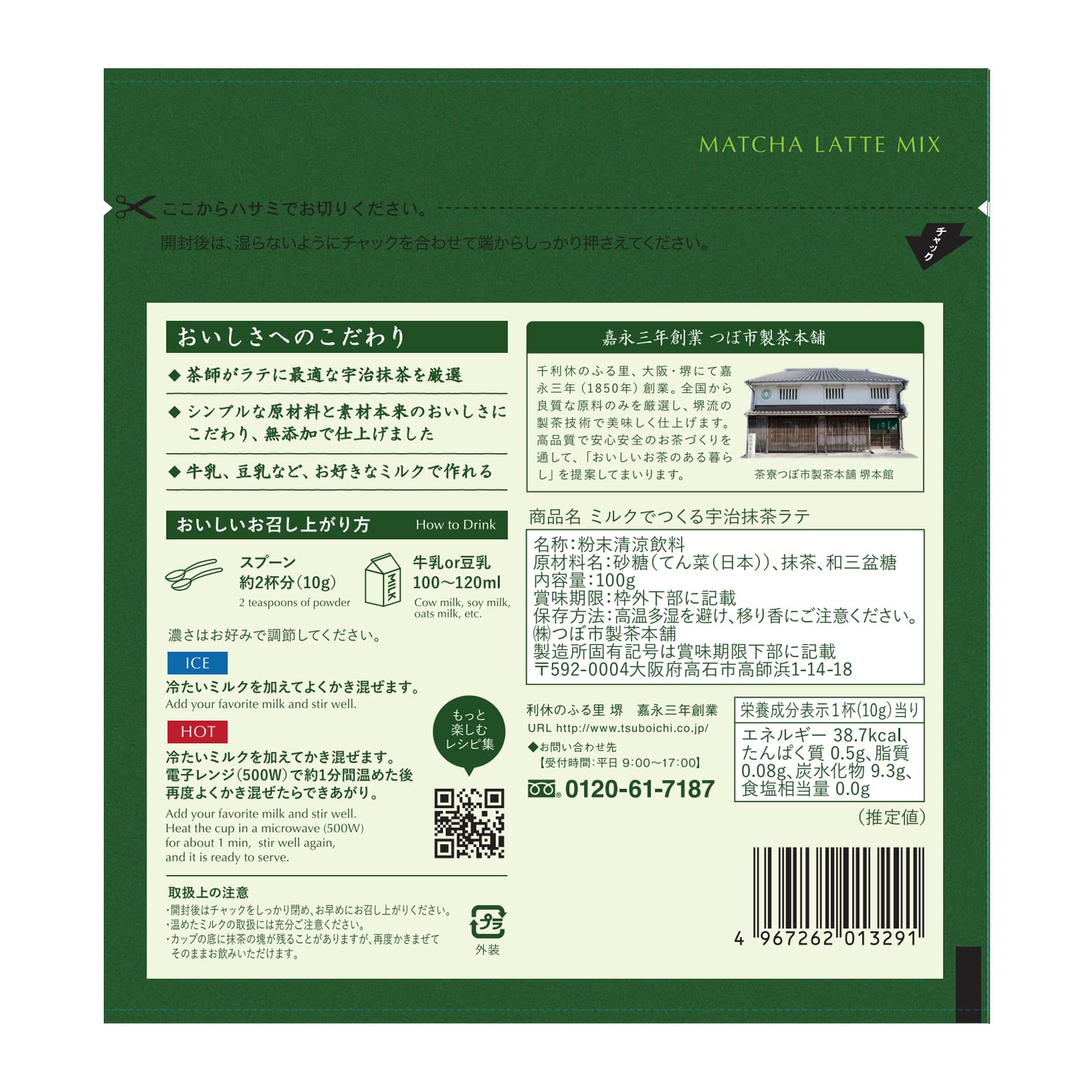 無添加【保存料、着色料、香料、乳化剤、人工甘味料不使用】乳成分不使用なので、牛乳や豆乳などのお好きなミルクで割って、ご自宅で本格抹茶ラテを。原材料はシンプルに国産砂糖、抹茶、和三盆糖だけ。茶匠のブレンド技で他にはない旨みに仕上げました。茶匠がミルクに合う宇治抹茶を厳選。濃いミルクの味に混ざり合ってもお茶の風味がしっかり残る鮮やかな緑が映える抹茶です。1袋(100g)で約10杯分【免責事項】メーカーによる商品リニューアルに伴いパッケージ(内容量も含む)変更が行われた場合、新パッケージでお届け致します事ご了承願います。