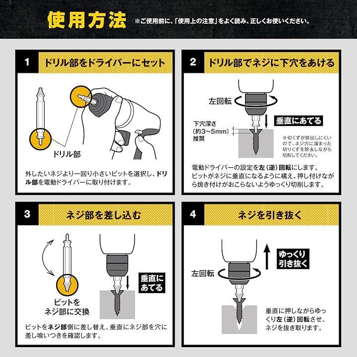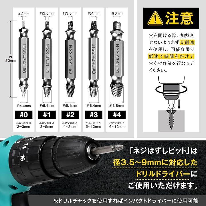 「ネジはずしビット」 は 径3.5~9mmに対応した ドリルドライバーに ご使用いただけます。
