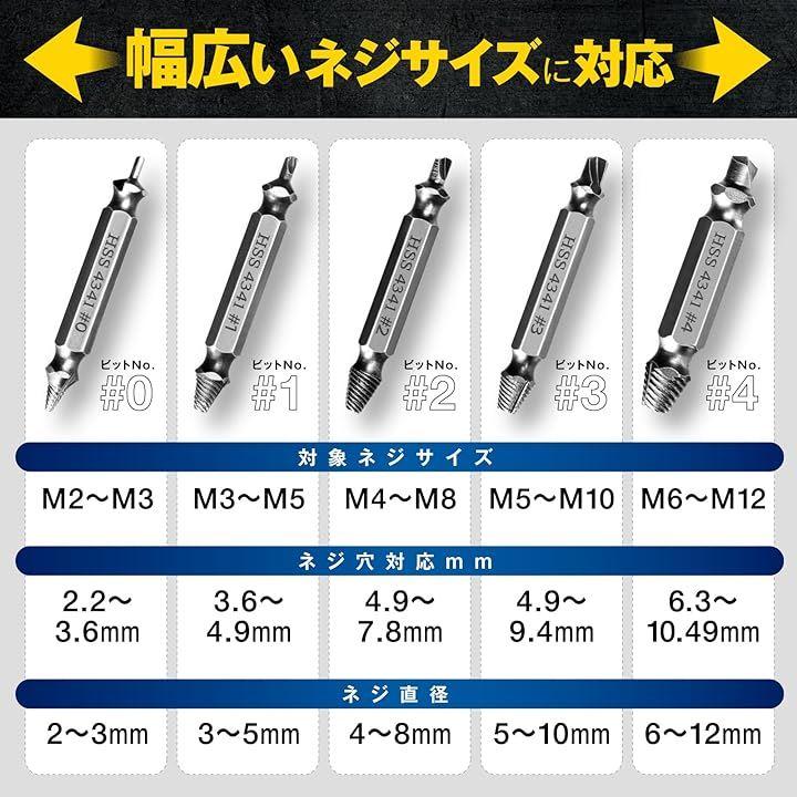 ・ネジ山が取れない困ったときの最後の砦・ネジ外しビット5本組