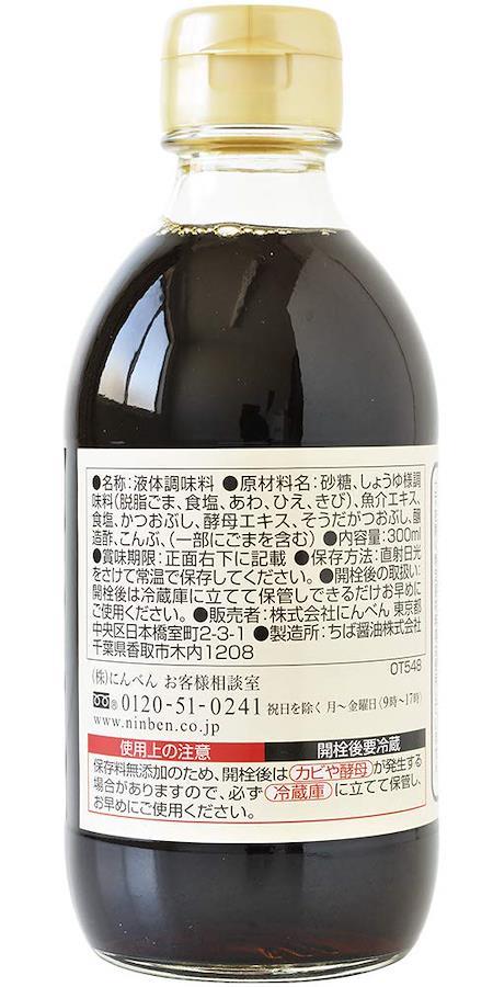 原材料:かつおぶし、そうだかつおぶし、しょうゆ様調味料(ごま・食塩・あわ・ひえ・きび)、砂糖、食塩、こんぶだし、魚介エキス、酵母エキス、醸造酢