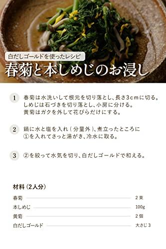 国内産の鰹節、さば節のだしに有機醤油を合わせ淡色で上品な風味の白だしに仕上げました。化学調味料、着色料は使用していません。お湯で割るだけで本格的なお吸いが簡単に作れます。本品1に対して以下の割合を目安に薄めてください。料理例:お吸い物 水または湯13~15。茶碗蒸し:水または湯11~13。おでん:水または湯9~11。鍋物:水または湯10~12。これ一本で、お料理の幅がグンと広がります。化学調味料無添加